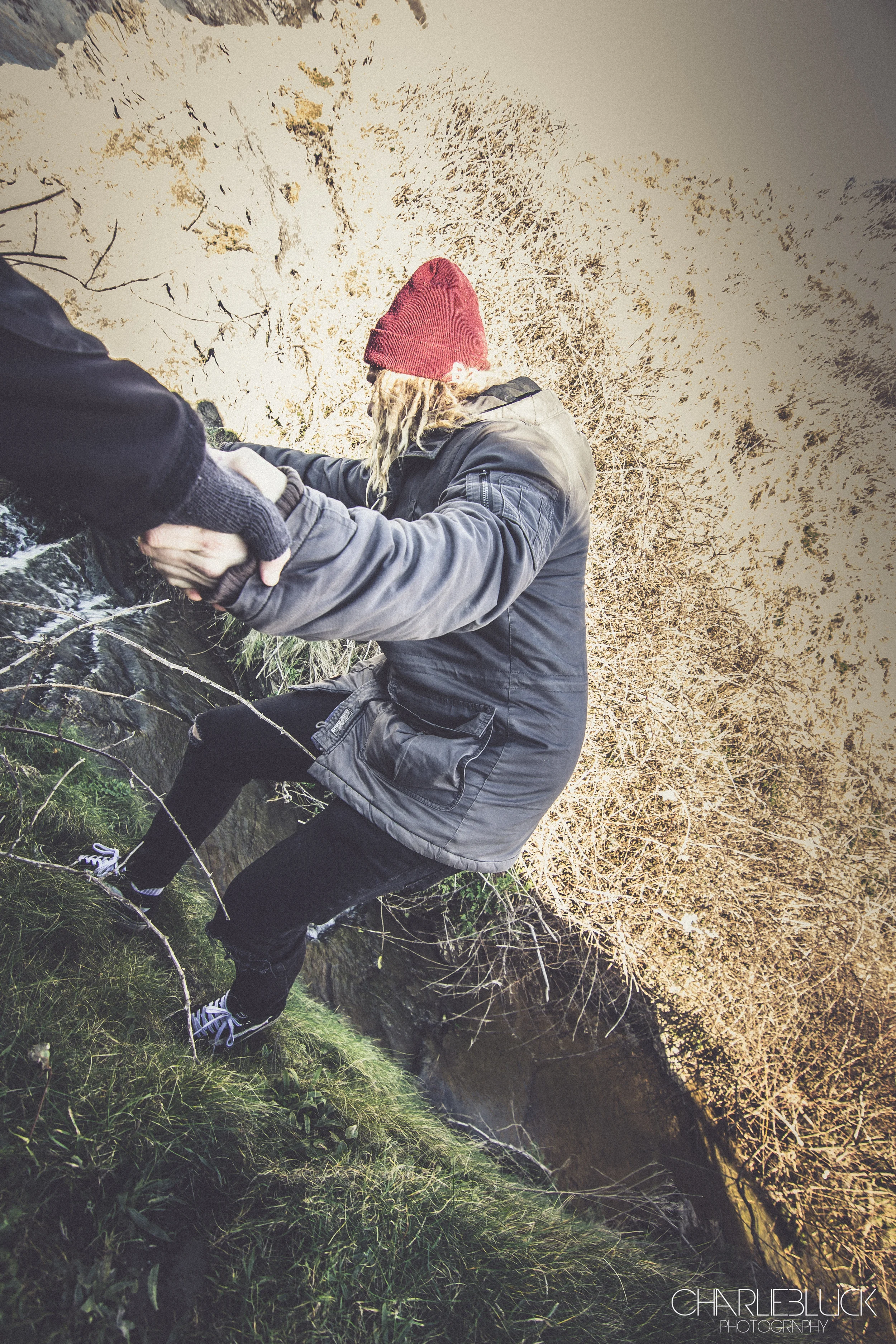 I clocked a waterfall, so we decided to investigate following a narrow dirt trail, it brought us to the ridge, Ryan wanted to take a shot, and so I held him off the drop. Then I though I’m in wellies so I decided to jump down. Got some really nice shots, captured on of Ryan looking at his images on camera on the bridge. We then decided to go down to the bottom of the waterfall, was really warming up by this point, really nice weather. We then spent a little time wondering the beach before we set off again